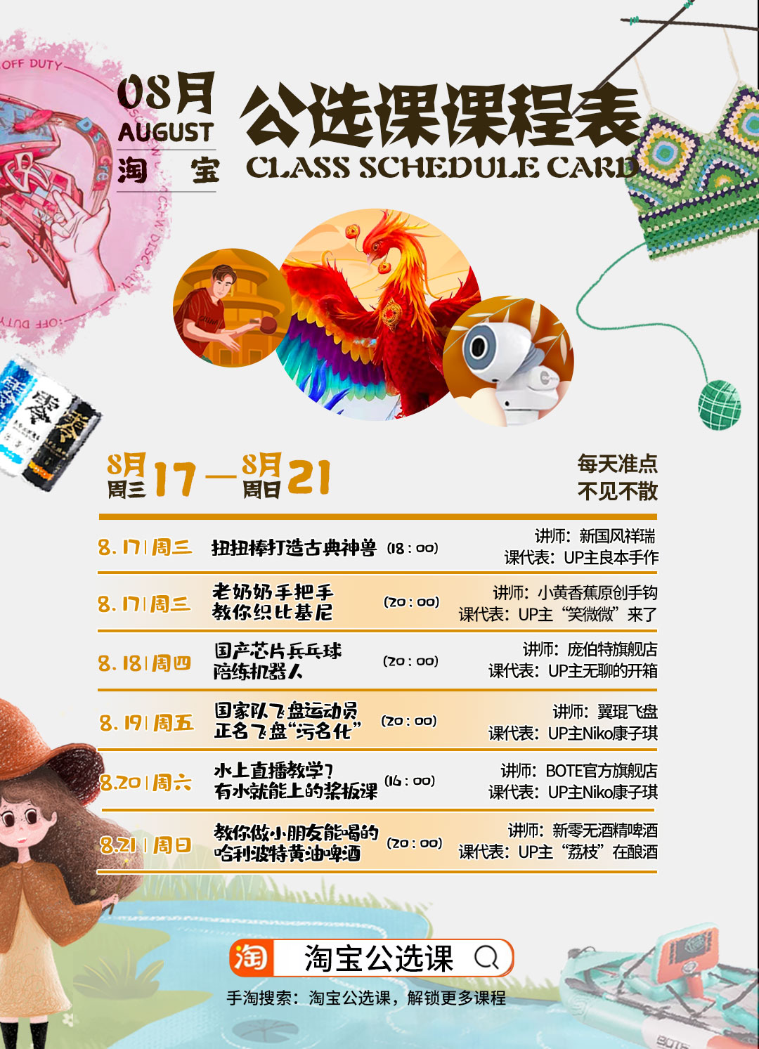 首場公選課將于8月17日晚間6點開課。屆時,用戶在淘寶App內搜索“淘寶公選課”,即可直達商家公選課直播間。