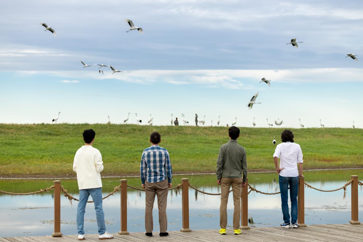 直播現場,三位嘉賓實地感受了“鶴鳴于九皋,聲聞于野”的壯觀景象。看到丹頂鶴成群結隊優雅飛過,許知遠連連驚嘆“那種真實、很性感的鶴,迎面向你涌過來時,會讓你心跳”;張朝陽用空氣動力學原理解釋它們為何能保持穩定飛行;李栓科則科普了丹頂鶴的鳴管有一米多長,尖叫的時候能穿透三四公里。