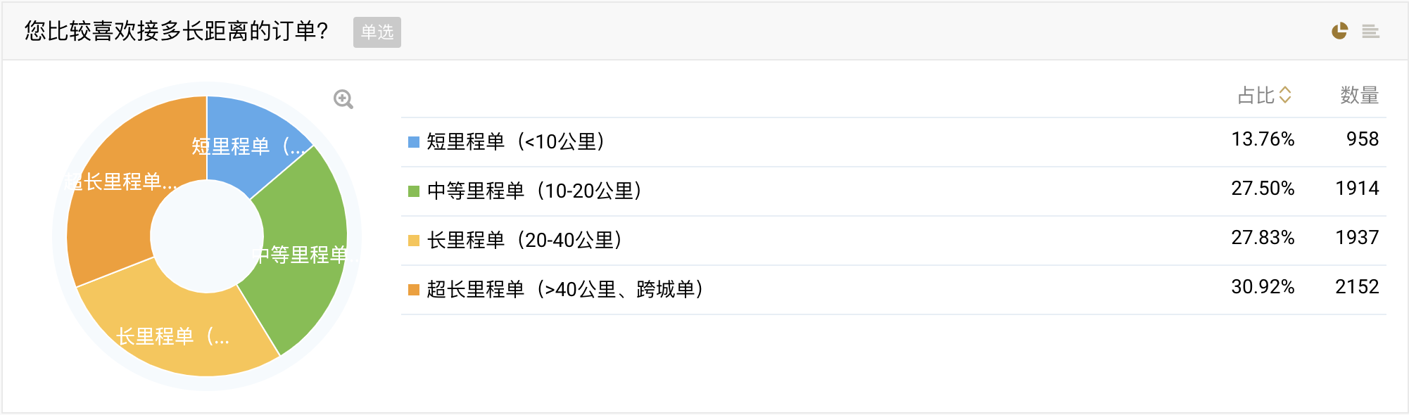 哈啰打車調研顯示,接受訪談的車主中,約87%偏好長里程(10公里以上)訂單,尤其是40公里以上訂單獲得最多選擇。對于哈啰打車持續運營并發掘長里程出行需求,并轉化為平臺訂單,66%的車主給予正向評價,認為日常感知較為明顯。