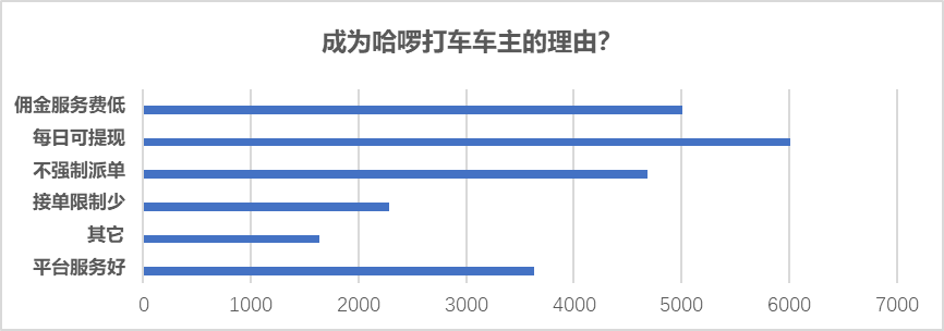 和收入相關的指標中,86.4%的車主對哈啰打車當天提現的功能有強烈的感受并點贊;另外有約72%的車主對于哈啰打車低傭金和低服務費感受較強。