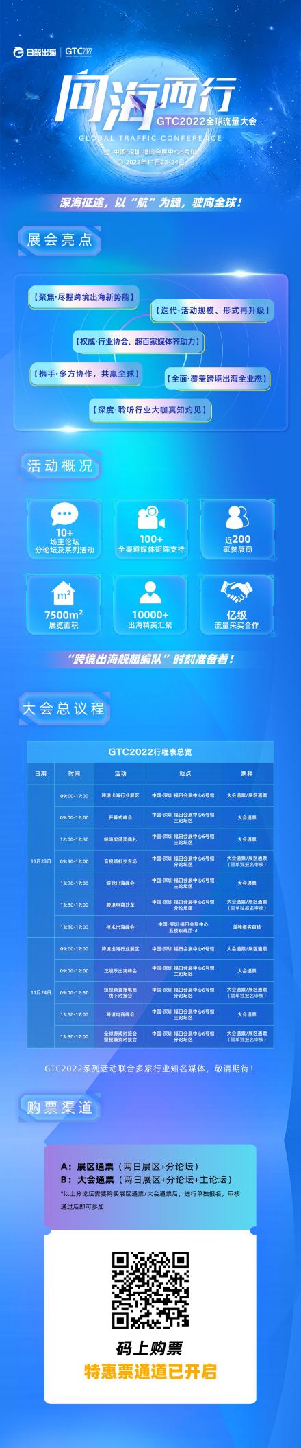 年末11月,對于跨境出海人來說,既要回顧過去一年戰(zhàn)績,同時(shí)也要開始展望未來新一年的出海規(guī)劃。而作為國內(nèi)跨境出海領(lǐng)域的年度盛會——GTC2022全球流量大會也終于定檔2022年11月23-24日,將在中國深圳福田會展中心6號館拉開帷幕。