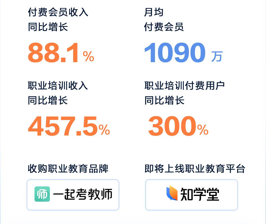 職業教育業務同樣是推動知乎增長的新利好。第三季度,職業教育付費用戶規模大幅擴大,同比增長300%。收入占比也從第一季度的5.3%提升至8.6%,成為知乎第二增長曲線。