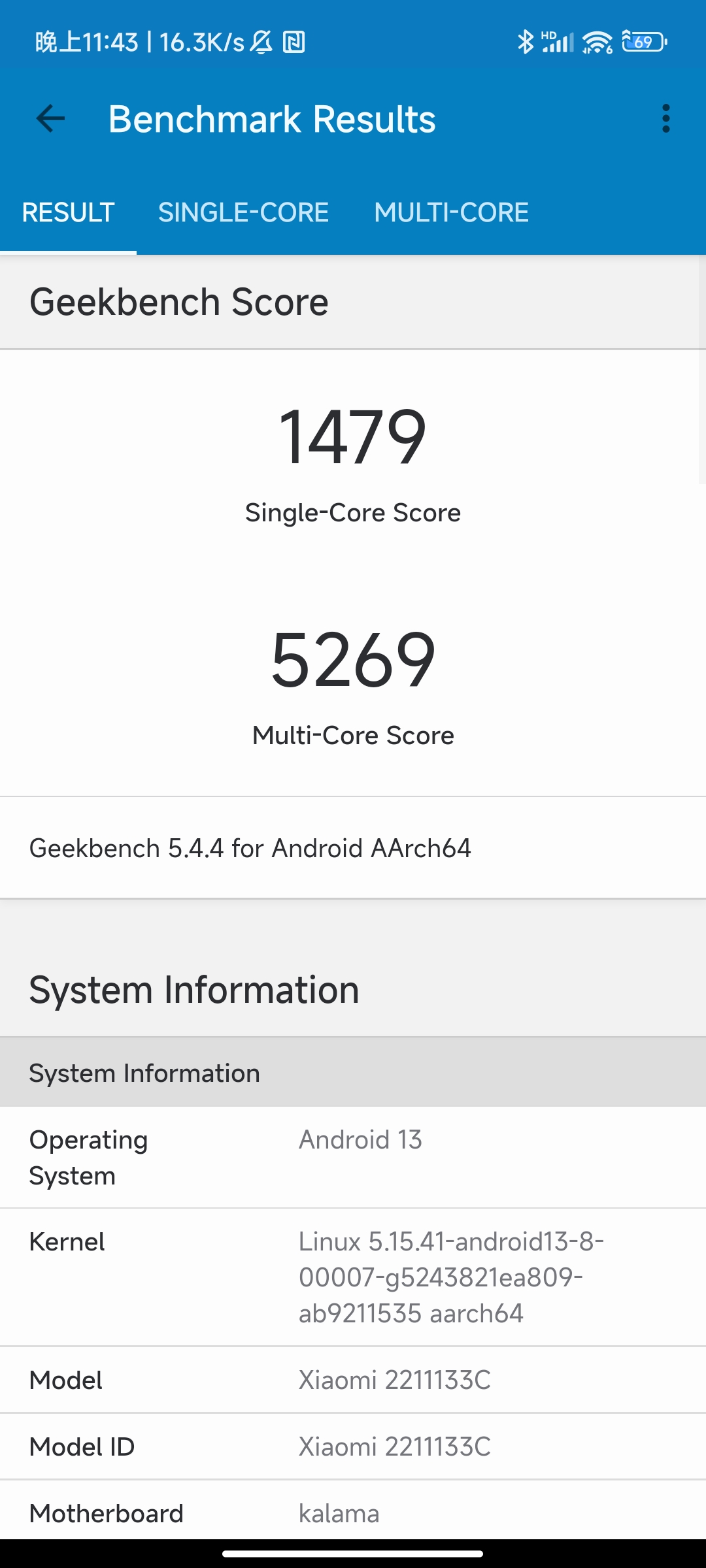 CPU性能的提升,也體現在了小米13的跑分中,在衡量CPU性能的Geekbench5跑分中,單核成績1479、多核成績5269,相較于驍龍8Gen1,單核成績提升了約20%,多核成績提升近40%。