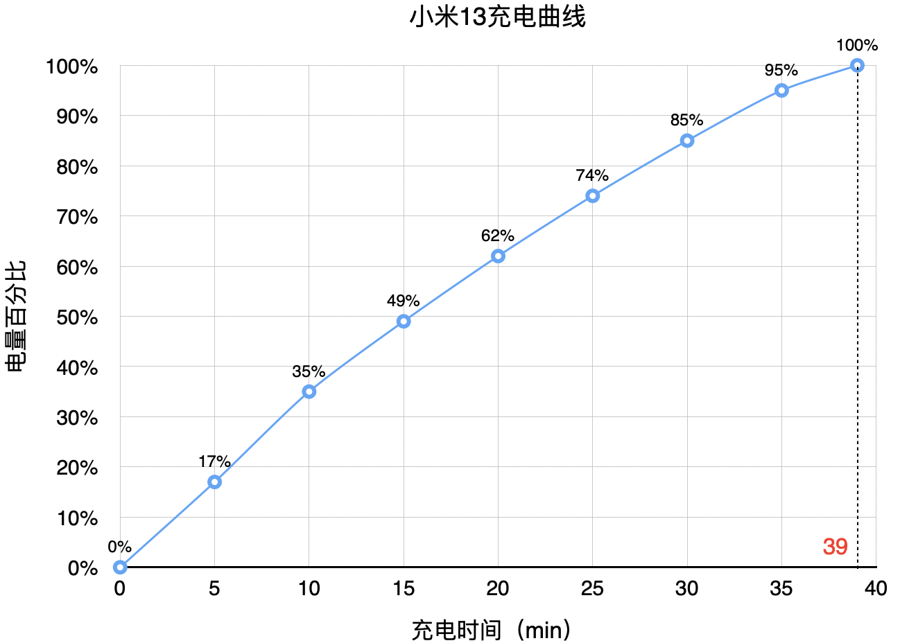 充電方面,小米13則配備了67W的有線快充+50W無線快充+10W無線反充的組合拳,并配合小米自研澎湃P1芯片,不僅使用隨機附贈的充電器0-100%充電僅耗時39分鐘。