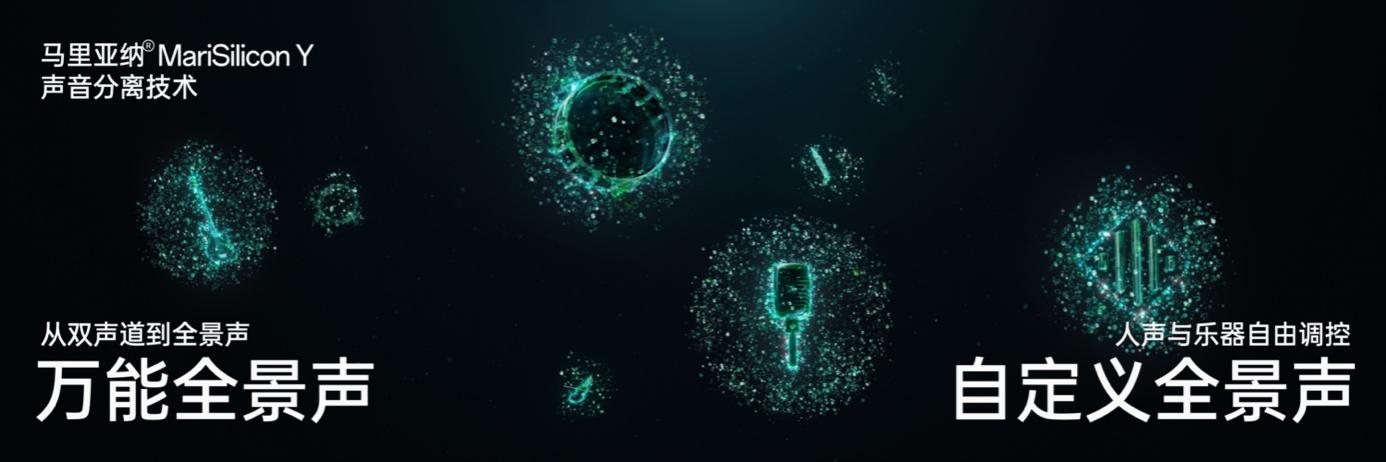 基于聲音分離技術,馬里亞納?? MariSilicon Y 還支持萬能全景聲的特性,可以將傳統雙聲道音樂,轉化升級為全景聲的全新效果,將這一高級聽感的選擇權從制作端交給用戶端。傳統上,如果音樂在制作時沒有采用全景聲格式,用戶則無法體驗到這一效果。萬能全景聲則可以讓用戶更靈活地匹配自己喜愛的音樂與全景聲效果,實現更具沉浸感的聽覺感受。