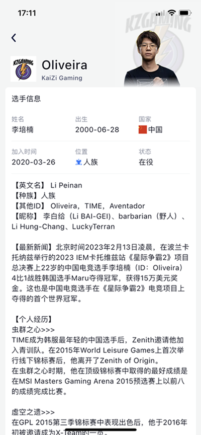 Oliveira李培楠(曾用ID:TIME)站在所有觀眾面前,捧起了2023 IEM卡托維茲站的冠軍獎杯,這是近二十余年來中國星際爭霸項目的第一個世界冠軍。