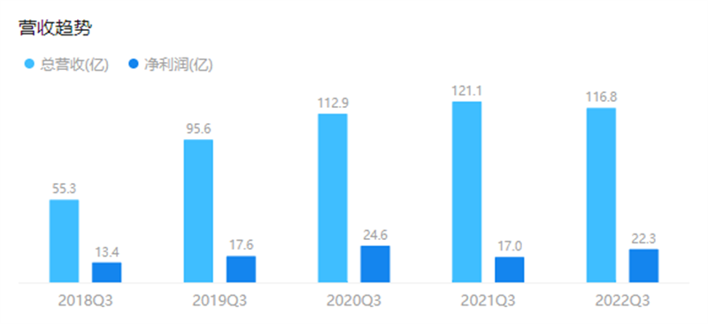 在優質產品的持續推動下,三七互娛業績穩步增長。財報顯示,最近五年,三七互娛營收從2018年Q3的55.3億元增長至了2022年Q3的116.8億元,已經連續三年穩居百億陣營。