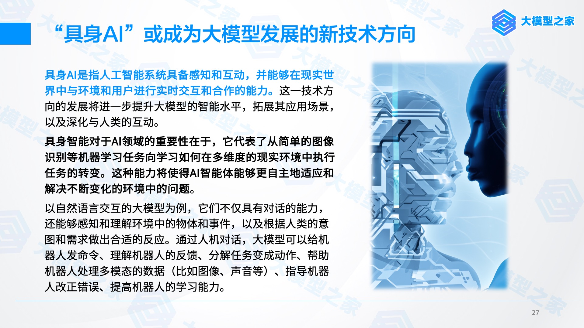 同時,《報告》還結合當下大模型產業發展格局指出現階段大模型落地的兩大路徑。針對不同行業的場景特點,進行有針對性的知識增強在解決現階段問題中發揮著重要作用。通過鏈接知識庫進行專業知識增強,打造行業大模型,或是通過增強聯網的能力實時擴充大模型知識儲備,大模型能夠深入了解各個行業的專業知識,并將其融合到模型的學習和推理中。