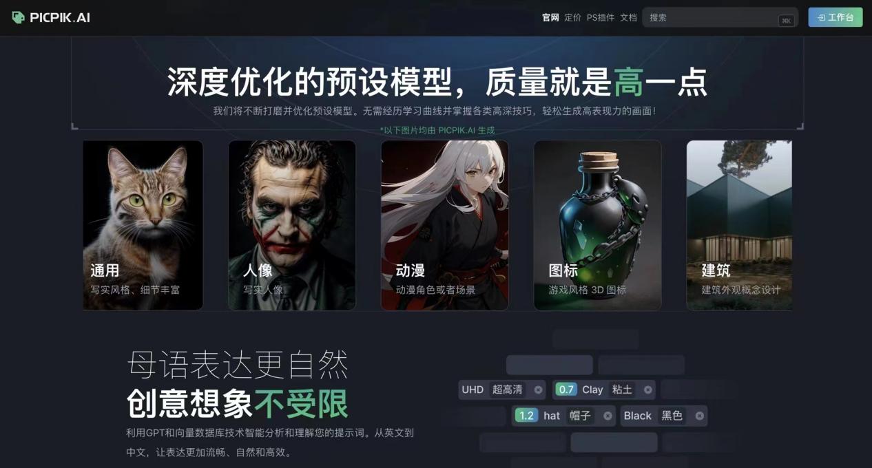 PICPIK.AI利用GPT和向量數據庫技術進行智能分析,可充分理解創作者輸入的提示詞。支持英文和中文提示詞,讓創作表達更加流暢、自然和高效。同時,PICPIK.AI實現了完整的Controlnet及原生參考圖功能,可以對圖像進行精確控制和調整,從風格到線條、從輪廓到姿態,輕松借助參考圖進行精確表達,滿足各類場景下的圖生圖需求。