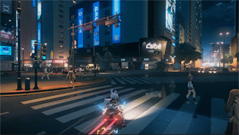 在都市本身的建設(shè)上,《代號(hào):無限大》通過PV,展示了被稱為“新啟”的都市中的數(shù)個(gè)風(fēng)格迥異的區(qū)域。