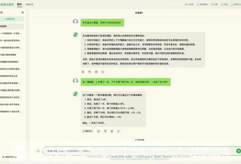 蔣杰還在現(xiàn)場出題,考驗混元大模型在實際場景中是否具備邏輯推理能力:“買一堆咖啡,上午喝了一半,下午又喝了剩下的一半,這時還剩30杯,一共買了多少杯”