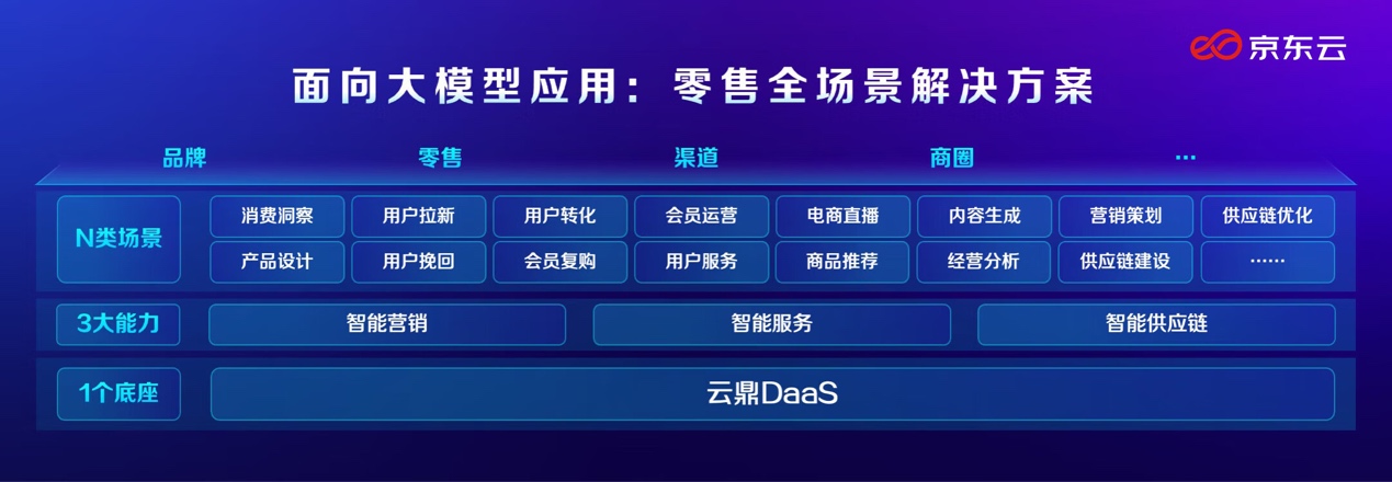 今年7月,京東推出京東言犀大模型,率先布局產業應用。如今,京東云進一步升級零售全場景解決方案,以云鼎DaaS為數智底座,通過智能營銷、智能服務、智能供應鏈3大能力,貫穿品牌增長的N個智能場景,滿足品牌商自主創新的、多樣化的營銷、服務和運營需求。