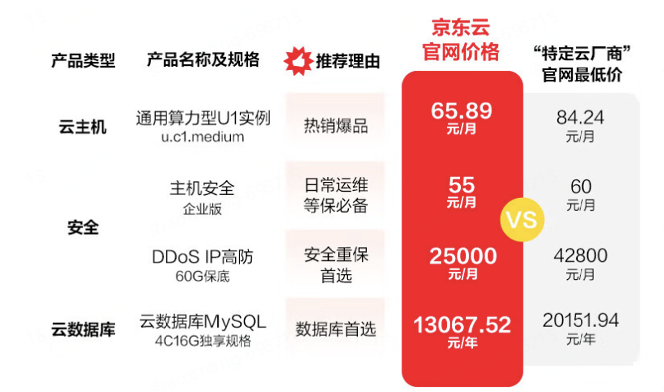 - 比產品——京東官網全線公有云產品參與比價活動;