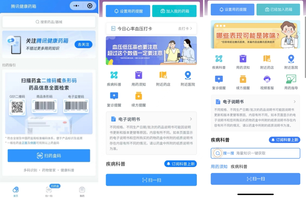 微信“掃一掃”掃描藥盒二維碼即可直達騰訊健康藥箱