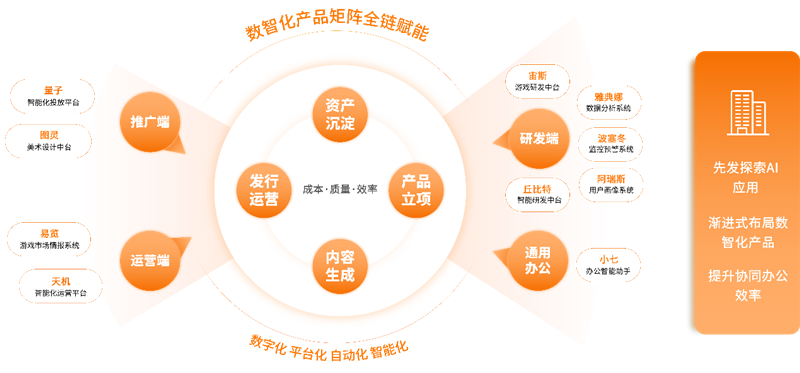根據(jù)公司過往公開資料顯示,一方面,三七互娛是少有的從辦公工具層面就開始加碼AI的企業(yè)。企業(yè)內部AI辦公工具“小七”已經(jīng)升級為智能辦公助手,功能覆蓋了搜索查詢、做圖、寫文檔、翻譯、客服、數(shù)據(jù)分析、團隊分析等多個方面。這一舉措不僅提升了企業(yè)的協(xié)同辦公和整體運轉效率,也加深了全體員工對AI技術的理解和認識,從思維層面引導員工自發(fā)考量AI對游戲的提升。