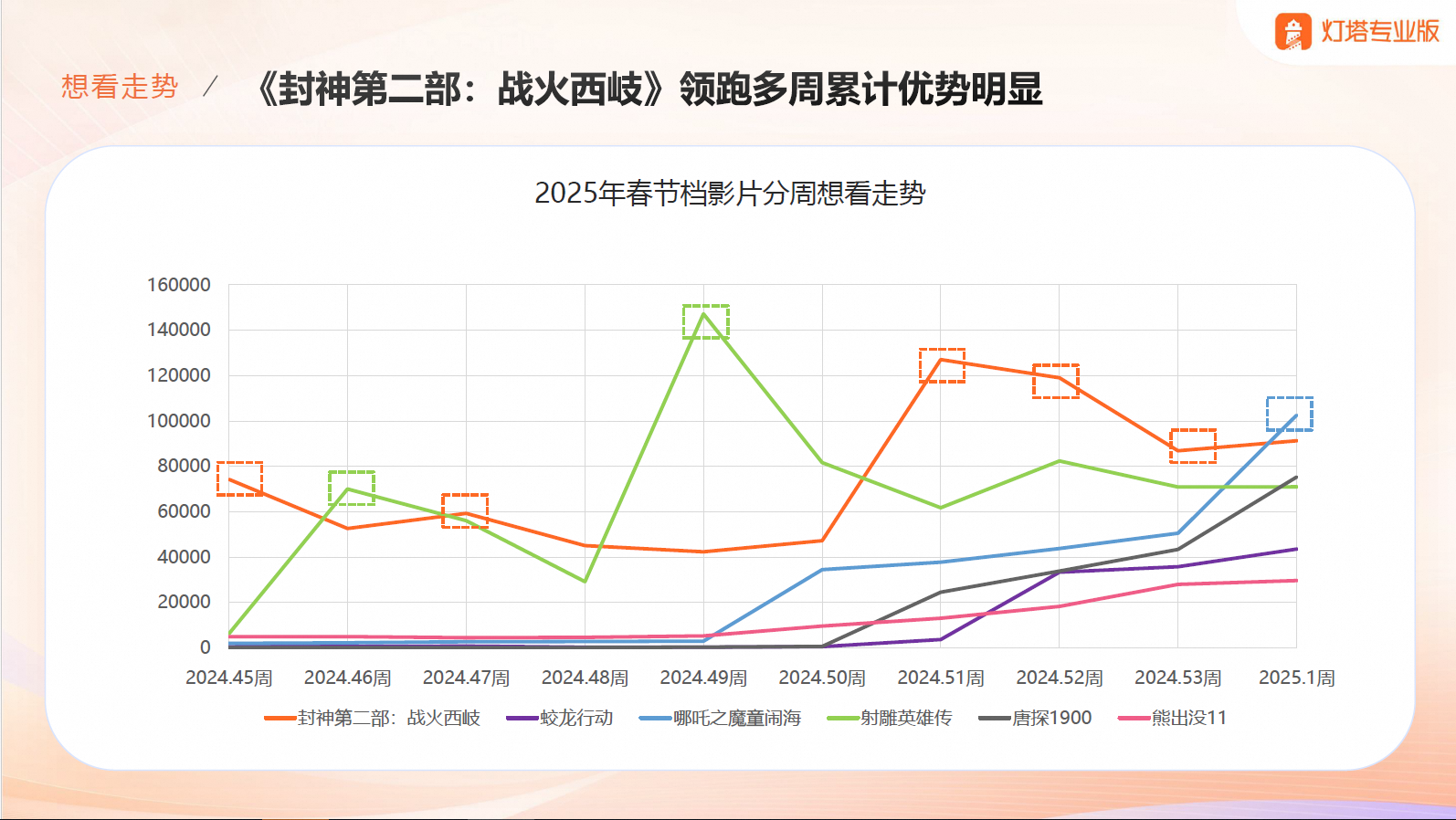 從去年全面免費開放燈塔AI,為電影從業者提供豐富、全面且獨家的行業信息與票房預測,到今年進一步推動行業數智化,優化電影全鏈路深度服務,燈塔專業版有望以技術進步助推2025年春節檔沖刺史上最強春節檔。