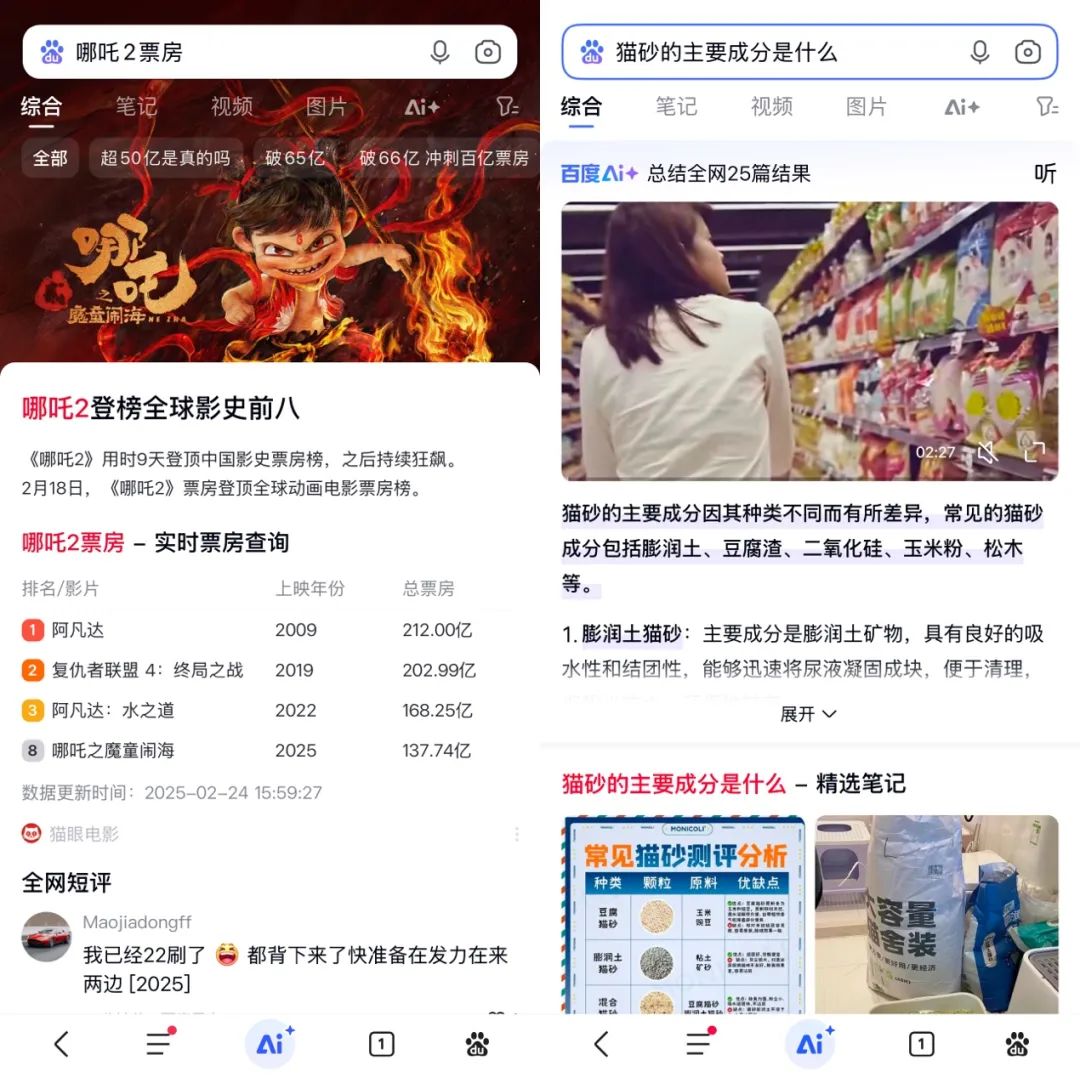 還有一些問題,百度會判斷用戶需要富媒體整搜索結果的呈現不再僅僅是簡單的文本或鏈接,而是通過AI總結、視頻和圖像的結合,提供多模態的信息輸出。這種方式讓用戶能夠更高效地獲取信息,同時也提升了搜索的交互性和趣味性。