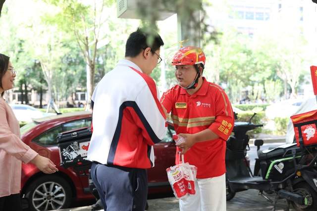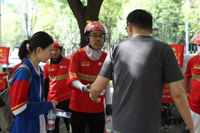 高考期間,京東外賣在全國近50城數百個考點組建全職騎手助考應急小隊,為送考途中忘帶證件、文具,或因交通原因影響應試的考生和家長,在確保配送安全的前提下,免費提供幫助。