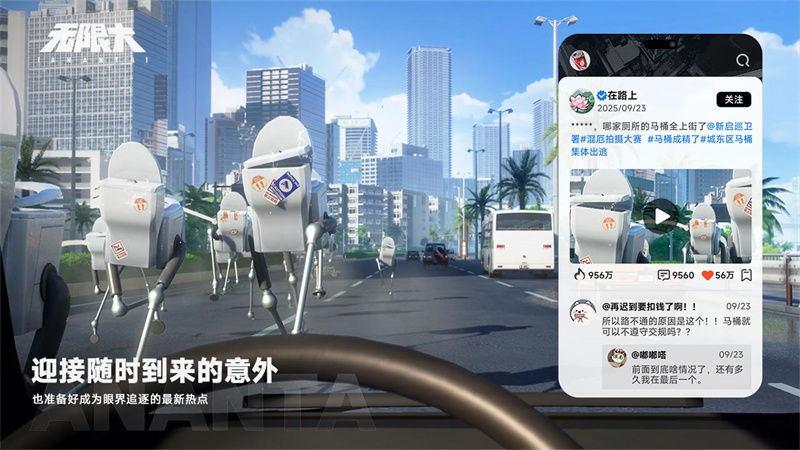 在《無限大》的世界里,人們對于各種稀奇古怪的事物都已習以為常。作為玩家,如果你看到一個長著雙腿的馬桶在大路上飛奔,不必驚慌。不如融入當地習俗,盡情捕捉熱點吧!
