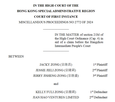 原告方主張,這些財產(chǎn)屬于宗慶后承諾給他們的資產(chǎn)。他們向內(nèi)地法院追討父親生前承諾的21億美元信托基金權(quán)益,并在香港申請禁止宗馥莉處置相關(guān)資產(chǎn)。