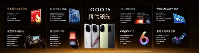 “跨代領先”iQOO 15 傳承 iQOO 手機在實力和口碑的雙重表現,搭載由第五代驍龍 8 至尊版領銜的“至尊性能組合”完全體,實現行業領先的性能表現,并在自研電競芯片 Q3 和 Monster 超核引擎的支撐下,帶來“全場景光線追蹤+ 2K 原畫超分+144FPS 無損超幀”,共筑行業領先游戲視效生態;更以全新演繹的國潮設計、超級潛望長焦以及更流暢智慧的 OriginOS 6等一系列強悍配置,打造一款“性能超長板,全面無短板”的未來性能旗艦。