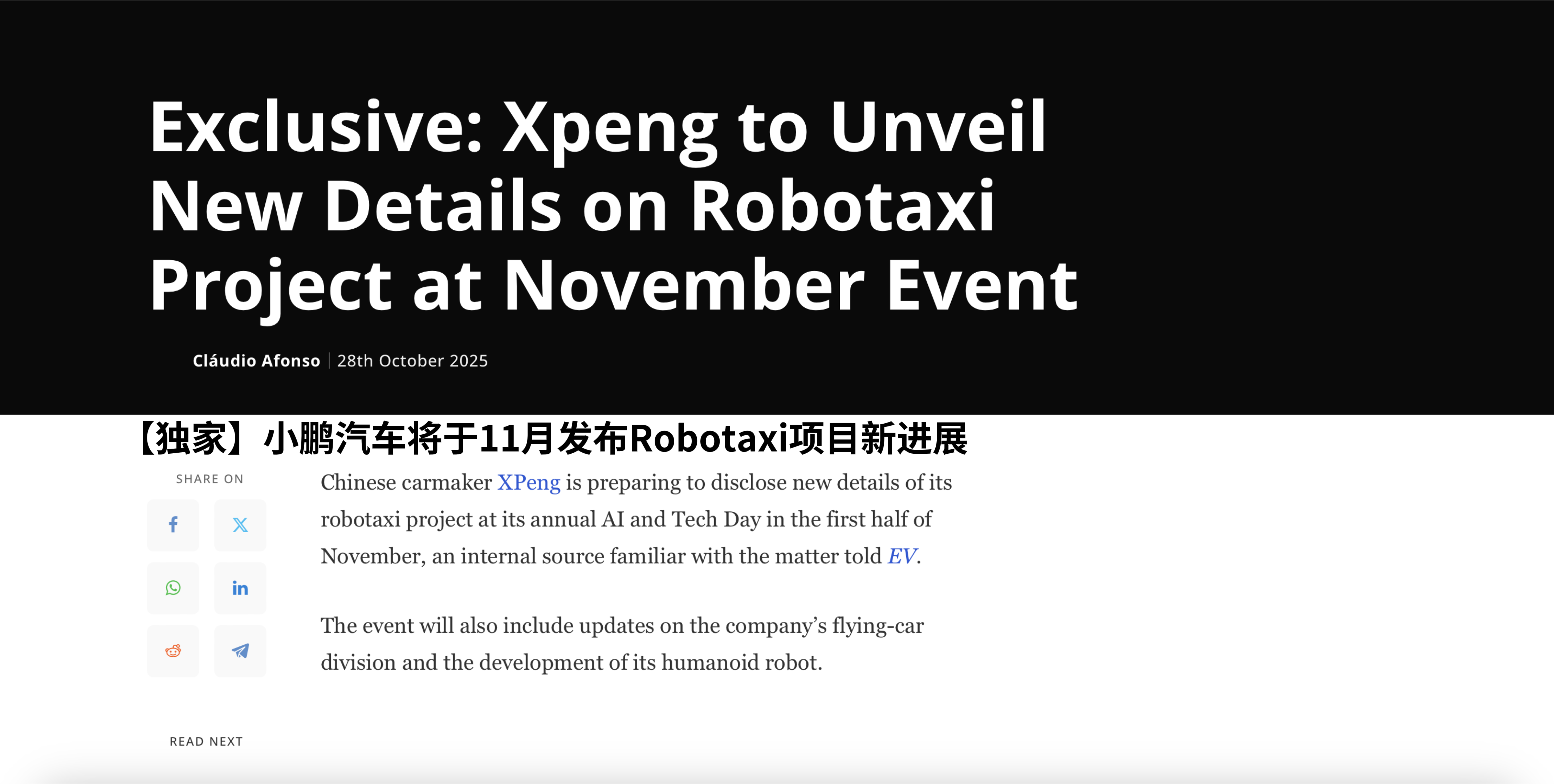 此前,小鵬汽車董事長兼CEO何小鵬曾闡述公司在”物理AI”領域的戰(zhàn)略規(guī)劃,明確指出:“實際上我們一直在做從自動駕駛的汽車到未來的 Robotaxi 跟無人駕駛汽車。在明年小鵬會第一個把前裝的 Robotaxi 汽車向全球首發(fā)。”